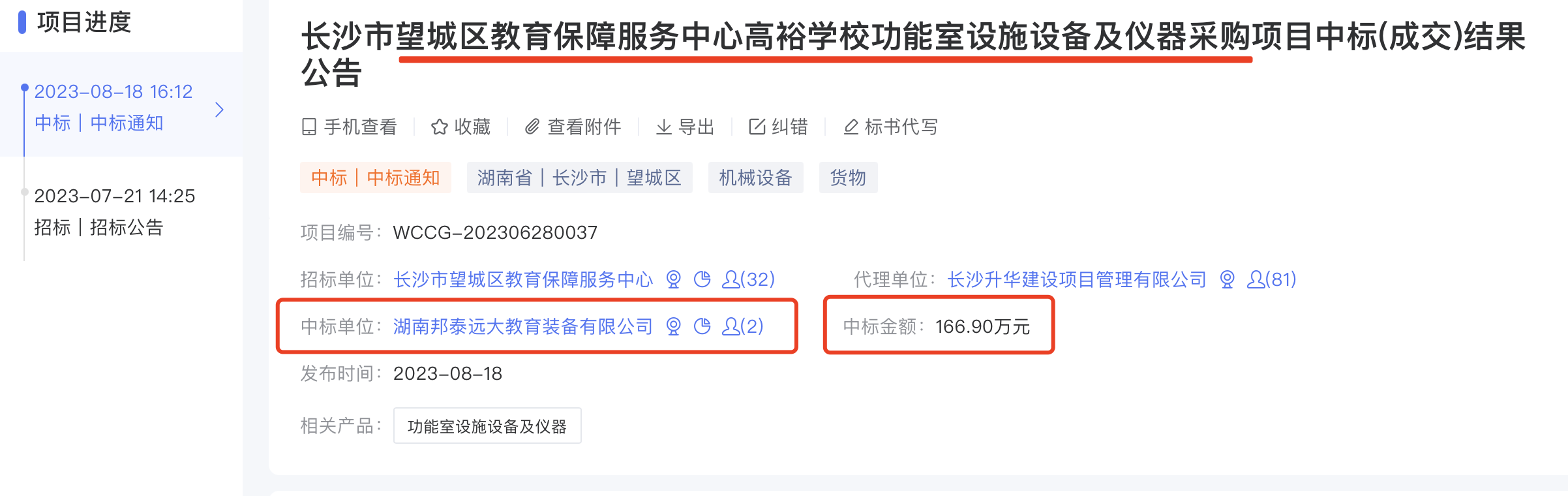 公司中標望城區(qū)高裕學校功能室教學儀器及設(shè)施設(shè)備